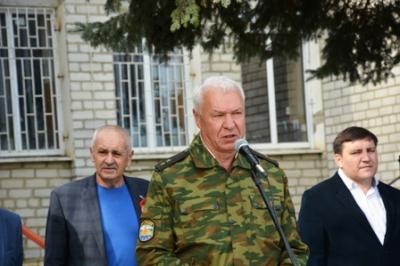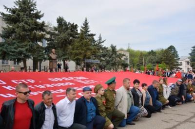 Далее митинг приветствовали участники автопробега «Эх, путь дорожка фронтовая» - акции в честь Великой Победы, которая проводится в крае девятый год подряд по инициативе подполковника запаса, краевого депутата, второго секретаря Ставропольского крайкома КПРФ В. И. Лозового.