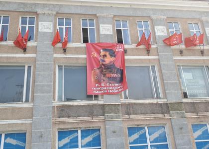 К праздничному дню крайком КПРФ заказал баннер Сталина, который был размещён в центре города Петропавловск-Камчатский. Все колонны военных и бесмертный полк проходили под пристальным вниманием товарища Сталина. Данное нововведение было положительно воспринято жителями краевого центра, особенно участниками бессмертного полка.