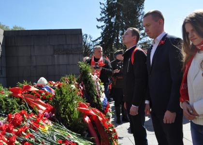 На импровизированном митинге перед возложением цветов выступила первый секретарь Санкт-Петербургского городского комитета КПРФ, член Президиума ЦК КПРФ О.А. Ходунова. Ольга Архиповна особо подчеркнула, что Победа в Великой Отечественной войне была возможна лишь под руководством Коммунистической партии и Верховного главнокомандующего генералиссимуса И. В. Сталина. Также перед собравшимися выступили член ЦК Компартии Финляндии Маркку Хонгисто и коммунист А.М. Шевченко.