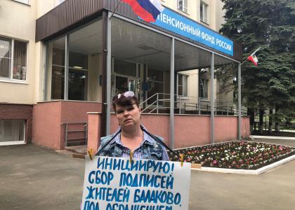Надежда Познякова провела одиночный пикет по сбору подписей за проверку деятельности Балаковского отделения Пенсионного фонда России Счетной палатой РФ.