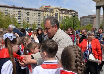 19 мая, в День рождения всесоюзной пионерской организации, более 500 юных сибиряков стали обладателями гордого звания — пионер. Красные галстуки на шеи детей повязали лидеры Новосибирского обкома КПРФ, в том числе мэр Новосибирска Анатолий Локоть.