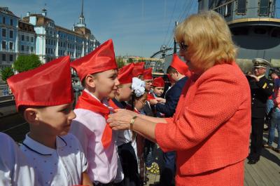 19 мая, в День пионерии, десятки юных ленинградцев собрались на легендарном крейсере “Аврора”, чтобы принять участие в торжественной линейке, посвященной дню создания пионерской организации.