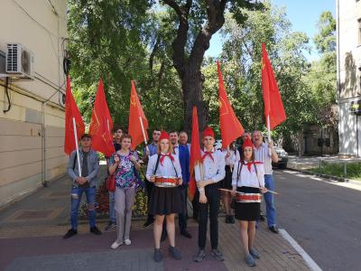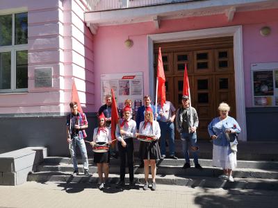 Пионеры, комсомольцы и ветераны пионерского движения прошли на улицу Театральная к мемориальному знаку на месте городского детского парка, где летом 1942 года от бомб, сброшенных фашистскими стервятниками, погибло более трёхсот ни в чём не повинных воронежских пионеров и школьников, и возложили красные гвоздики.