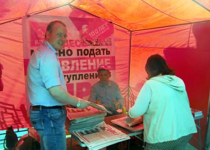 Коммунисты расположились с палаткой у моста. Агитационный материал, посвящённый жизни нашего города и страны, жители города брали с огромным интересом. Прохожие подходили к палаткам и задавали вопросы коммунистам. В основном, по большей части они жаловались на нынешнюю социально-экономическую ситуацию в стране и в городе. Многие выражали надежду на нашу победу в нынешней острой политической борьбе.