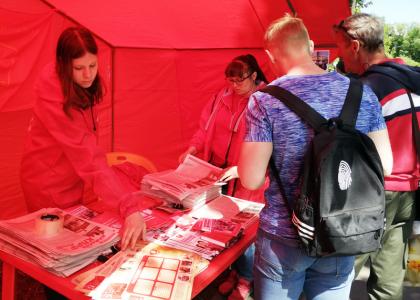 25 мая горкомы КПРФ и ЛКСМ РФ поздравили жителей Иваново с Днём города под яркими красными флагами над алыми палатками, устроив пикеты на Ярмарке мастеров и на Набережной с раздачей агитационного материала.