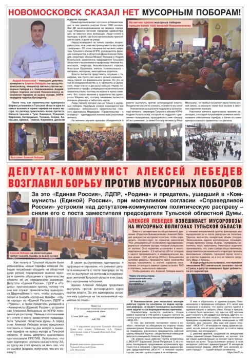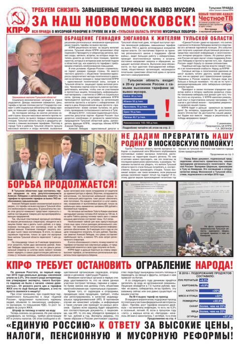 В газете критиковалась «Единая Россия», «мусорная» реформа,