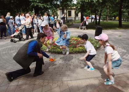 Маленьких жителей ожидала полоса препятствий из различных спортивных и интеллектуальных конкурсов, ведущих их к заветным сладким призам — дети с интересом проходили задания от московских комсомольцев. После, немного устав от такого активного досуга, участники смогли насладиться сахарной ватой и попробовать на себе технику аквагрима.