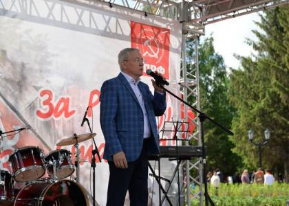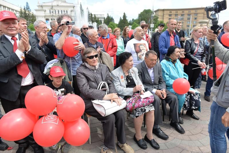 поднятия комсомольцами флага КПРФ в небо, на сцену для приветствия поднялся