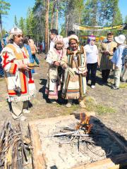 Традиционно праздник начался с обрядов: приветствие через священного оленя,