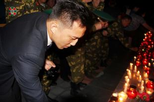 В минувшую субботу в Кызыле, в дань памяти и уважения павшим солдатам, в рамках международной акции «Свеча памяти», были все кому не безразличен подвиг советского солдата, а это гости города и кызылчане, военные и спасатели, сотрудники правопорядка и представители байкерского клуба, комсомольцы и коммунисты Кызыла, все они отдали дань уважения и почтили память павших войнов минутой молчания. И в память о павших к все смогли оставить свою свечу памяти у многочисленных мемориалов на площади победы в Кызыле.