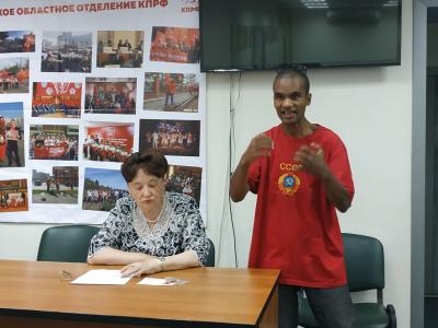1 июля актив Тюменского обкома КПРФ встретился с коммунистом Донецкой народной республики, сержантом армии ДНР Бенесом Айо.