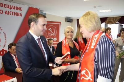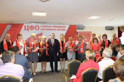 Началось заседание с вручения партийных билетов вступившим в ряды КПРФ. Эту почётную миссию было поручено провести Заместителю Председателя ЦК КПРФ Ю.В. Афонину. Также он вручил высокие партийные награды достойным коммунистам Липецкого отделения КПРФ: Р.С. Насоновой и Е.Т. Антипову.