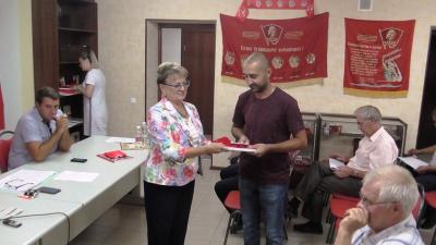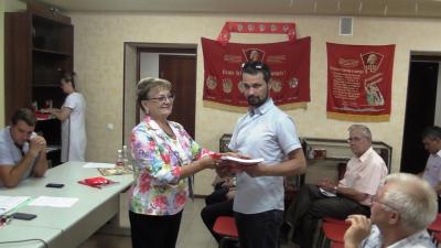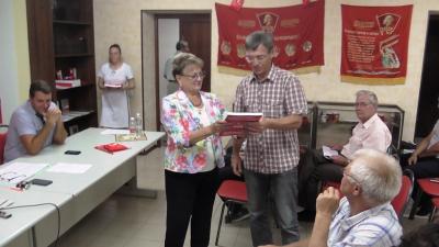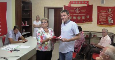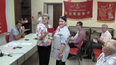 выполнила приятную обязанность, вручив партбилеты новобранцам Компартии и поздравив