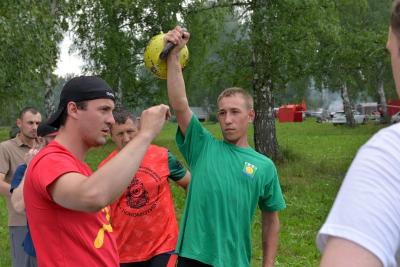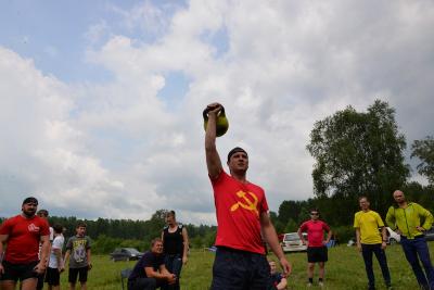 поднять гирю на грудь в течение минуты. Первым вышел представитель Дзержинского