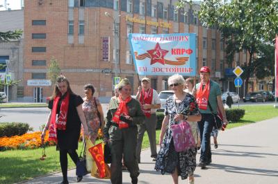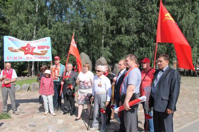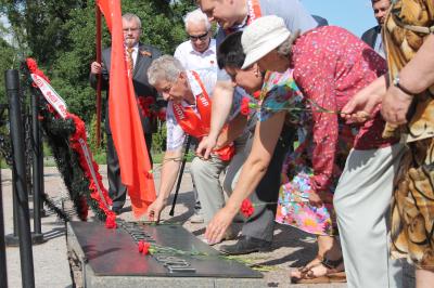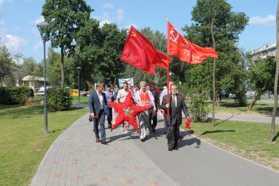 Коммунисты возложили живые цветы и венок в виде Красной звезды, подняли перед вечным огнем Красные знамена, с которыми советские солдаты шли в бой за Родину. Среди них был и флаг – символ Победы над врагом, родившийся на псковской земле в боях под Идрицей и водруженный затем над поверженным Рейхстагом.