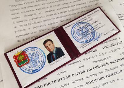 На очередном заседании избирательной комиссии Липецкой области 2 августа кандидату от КПРФ Сергею Токареву вручили удостоверение кандидата на должность главы администрации Липецкой области.