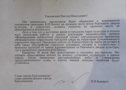 жителей за сохранение памятника Владимиру Ильичу. Краевой Комитет КПРФ отправил