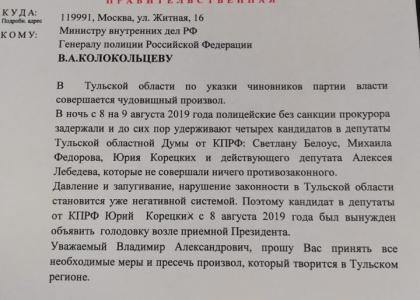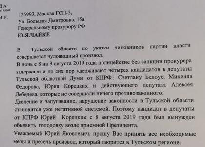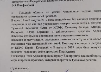 Кандидат в депутаты Тульской облдумы от КПРФ Юрий Корецких объявил сухую голодовку