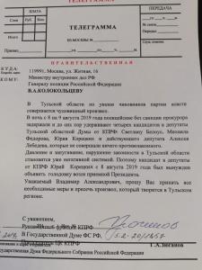 поводу телеграммы генеральному прокурору России, министру внутренних дел и
