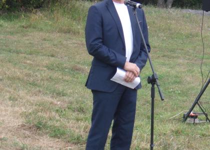 - Наш памятник выглядит скромно. Но надо иметь ввиду, что в его возведение не вложен ни один государственный рубль. Памятник был задуман простыми гражданами и делался на их невеликие трудовые средства. Но значение любого памятника не зависит от его размеров или степени помпезности. Главное в памятнике - это его идейно-политическая сущность, те социальные задачи, которые он выполняет. Наш памятник призван напомнить современникам о той трагедии, которая сто лет назад произошла здесь, на улицах села Кошелево. Памятник призван донести до потомков имена жителей злодейски убитых чехословацкими карателями. Наш памятник является народным ответом. Я бы даже сказал, он является русским народным ответом тем политическим кругам в Чехии и Словакии, которые извращают историю. Они пытаются утверждать, что каратели и мародеры из Чехословацкого корпуса были благородными рыцарями и честными солдатами, «мужественно выполнявшими свой воинский долг в варварской России». Хотя честные солдаты всегда гнушаются участвовать в карательных операциях. Честные солдаты не убивают пленников, тем более зверским образом, как они убили моего деда. Чтобы внушить лживую версию о якобы «миротворческой деятельности» Чехословацкого корпуса на Востоке России по «притушению» гражданской войны разработана программа на всем длинном пути от Пензы до Владивостока установить 58 памятников легионерам, умершим или погибшим в России. 22 таких памятника уже были поставлены вопреки протестам местной общественности. Люди помнят до сих пор что чехословаки творили в те годы. А где памятники жертвам чехословацкого террора? Горько говорить, но в России нет до сих пор ни одного памятника, построенного в честь людей, убитых карателями-легионерами или замученных ими в застенках. Поэтому наш памятник - первое материальное свидетельство злодеяний чехословаков в Сибири. Причем это свидетельство конкретное, где на документальной основе были перечислены все жертвы чехословаков в селе Кошелево. Я прошу вас помнить и проявлять заботу об этом памятнике!
