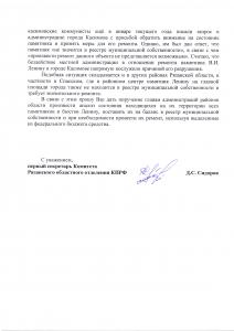 Первый секретарь обкома КПРФ Денис Сидоров направил письмо Губернатору Рязанской области Николаю Любимову в связи с разрушением памятника В.И. Ленину в Касимове. Лидер рязанских коммунистов просит главу областного правительства «дать поручение главам администраций районов области произвести анализ состояния находящихся на их территории всех памятников и бюстов Ленину, поставить их на баланс в реестр муниципальной собственности и при необходимости провести их ремонт».