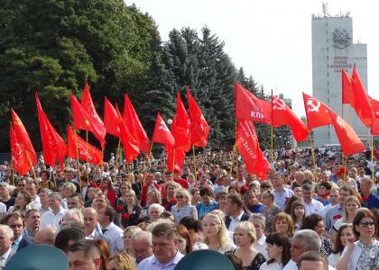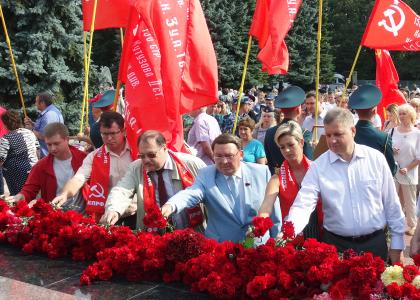 Колонна курских коммунистов под алыми знаменами Победы 23 августа подошла к Мемориалу памяти павших в Великой Отечественной войне 1941-1945 годов. Куряне возложили венки и алые гвоздики, тюльпаны, розы к подножию мемориального комплекса, а также к памятникам Неизвестному солдату, С.Н. Перекальскому, погибшему на курской земле в феврале 1943 года.