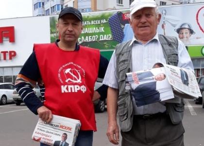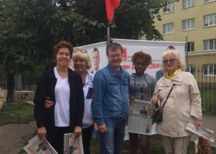 В 25 точках города коммунисты, представители народно-патриотических сил области собрались, чтобы распространить информационный бюллетень и листовки в поддержку кандидата от КПРФ Ивана Сергеевича Дынковича.