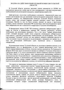 ЖАЛОБА НА ДЕЙСТВИЯ ИЗБИРАТЕЛЬНОЙ КОМИССИИ ТУЛЬСКОЙ ОБЛАСТИ