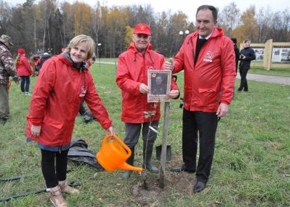 - Немцы, когда захватывали территорию СССР, вырубали и выжигали леса наравне с деревнями и городами. Они хотели уничтожить нашу Родину полностью. Я вспоминаю своего отца, он был председателем колхоза, и первое, что он сделал, когда вернулся с войны в 1946 году, заложил колхозный сад в Орловской области. На территории посёлка Горки Ленинские была экспериментальная база, где выводили не только сортовые зерновые культуры, но и плодовые деревья. Сегодня мы, коммунисты Ленинского района, принимаем активное участие в этой акции. А в 2013 году мы отстояли памятник «Шагающий Ленин», поэтому я обращаюсь ко всем с огромной просьбой – к 150-летию В.И. Ленина памятник нужно привести в порядок и рядом с ним посадить сад.