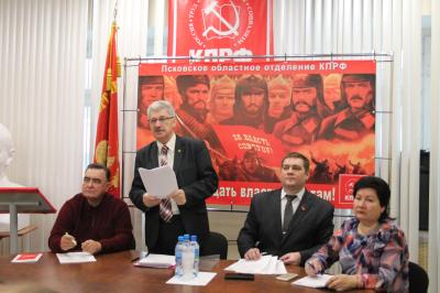 2 ноября состоялся V совместный Пленум Комитета и Контрольно-ревизионной комиссии Псковского областного отделения КПРФ, на котором определили задачи коммунистов Псковского областного отделения КПРФ по выполнению решений IX (октябрьского) совместного Пленума ЦК и ЦК КРК КПРФ «Об укреплении идейно-политических, организационных и нравственных основ партии», обсудили внутрипартийные и кадровые вопросы, а также утвердили сроки проведения отчётно-выборной кампании в первичных и местных отделениях КПРФ в 2020 году.