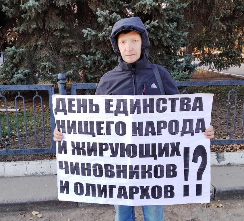 4 ноября – в день т.н. "народного единства" в Ленинском районе Саратова проведена серия одиночных пикетов с целью показать сущность противоречий в современном обществе.