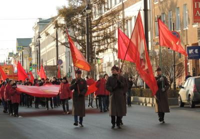 В Омске коммунисты по традиции отметили очередную годовщину Великой Октябрьской социалистической революции праздничной демонстрацией и митингом протеста под лозунгами борьбы за достойную жизнь для трудящихся, для всего народа.