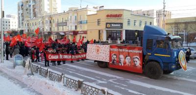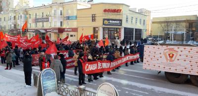 Демонстрации, митинги и торжественные собрания, посвященные 102-й годовщине Великой Октябрьской социалистической революции, состоялись в Мирном, Алдане, Нерюнгри, Верхневилюйске, Вилюйске, Намцах, Борогонцах, Бердигестяхе, Нюрбе, Сунтаре, Покровске, Майе и других населенных пунктах республики. В этот день в ряде районов молодые люди изъявили желание вступить в ряды КПРФ и комсомол.