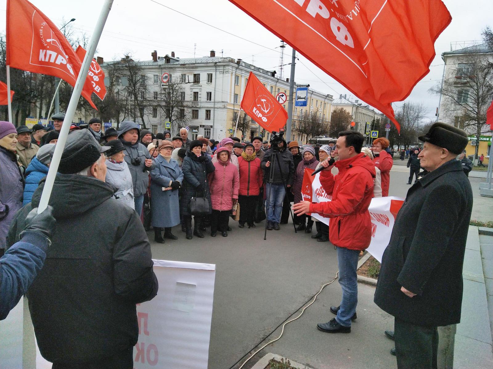 Подобные митинги, возложение цветов к памятникам Ленину и даже демонстрации прошли в других городах Владимирской области.