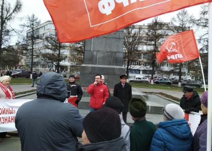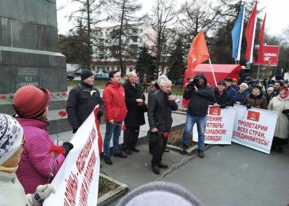 Седьмого ноября не только коммунисты, но и многочисленные понастоящему советские люди собрались во Владимире на площади Ленина, чтобы поклониться памятнику основателю Страны Советов, отметить 102-ю годовщину Великой Октябрьской социалистической революции и покоммунистически принципиально высказаться о наболевшем. Проведение праздничнопротестного митинга взял на себя Владимирский горком КПРФ.