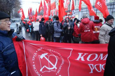 «Слава коммунистической партии – вдохновителю Октябрьской революции! Ура!» – скандировал в громкоговоритель член бюро обкома КПРФ Александр Бояринцев, а участники демонстрации отвечали ему троекратным «Ура!». Под марши «Всё выше!», «Солнечный круг», барабанную дробь, колонна шла по улице Московской.