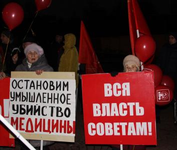 убийство медицины» и развернули транспаранты: «Слава Великому Октябрю!»,