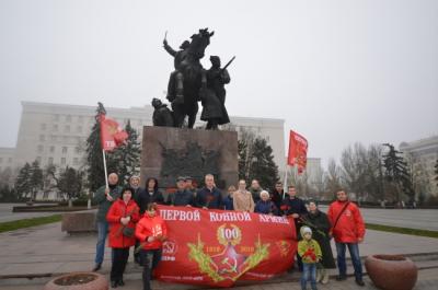 Коммунисты Пролетарского районного отделения КПРФ совместно с Советом ветеранов Пролетарского района присутствовали и выступили на митинге, прошедшем во дворе Дома-музея С.М. Буденного. Председатель Совета ветеранов Пролетарского района Абросимов Н.В., секретари Пролетарского (с) РК КПРФ Н. Деткин, М. Февралев в своих выступлениях напомнили о значении Первой Конной в годы гражданской войны, её командирах и других военноначальниках, вышедших из рядов этого славного соединения Красной Армии, сказали напутственные слова станичной молодёжи. По окончанию митинга делегация Пролетарского (с) РК КПРФ возложила цветы к памятнику С.М. Буденному.
