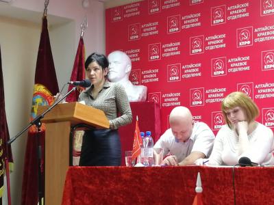 выступила первый секретарь Алтайского крайкома КПРФ Мария ПРУСАКОВА. В своем