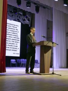 С докладом, посвящённым И.В. Сталину, свершениям его эпохи и теоретическому наследию, выступил секретарь обкома КПРФ по идеологии С.В. Щербаков.
