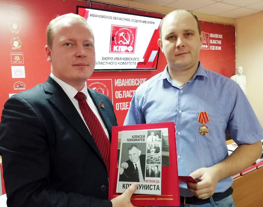 В заключение заседания лидер ивановских коммунистов А.Д. Бойков вручил ряду товарищей памятные медали, посвящённые 140-летию со дня рождения И.В. Сталина, книги управляющего делами ЦК КПРФ А.А. Пономарёва «Исповедь коммуниста» и фотоальбомы, посвящённые 150-летию со дня рождения В.И. Ленина.
