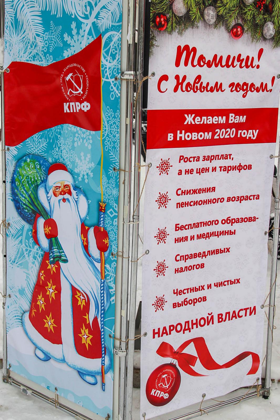 Активисты Томского горкома КПРФ 31 декабря решили поздравить жителей города и пожелать, чтобы в 2020 году сбылись самые смелые мечты - о росте зарплат, снижении пенсионного возраста и честных выборах.