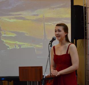 В заключение вечера в исполнении молодых исполнителей – Артема Лямина и Елизаветы Морозовой прозвучали хорошо знакомые и всеми любимые песни «Красная армия всех сильней», «Бьют свинцовые ливни», «Крейсер «Аврора», «И вновь продолжается бой!».
