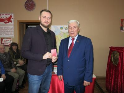 Перед началом совещания А.И. Жидков вручил партийные билеты новым членам партии, а также награды партии ряду товарищей.
