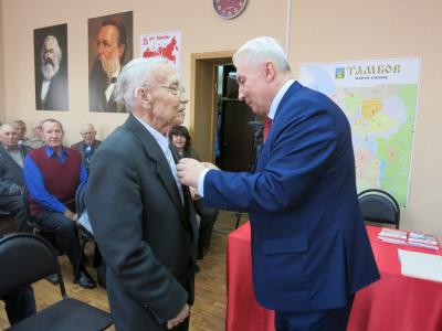 На сегодняшний день на учёте в областной парторганизации состоит 5 ветеранов Великой Отечественной войны. Двоих из них ¬– Н.И. Торопцева ((Моршанский ГК КПРФ) и Н.С. Семёнова (Советский РК КПРФ) - А.И. Жидков наградил медалью «75 лет Великой Победы».