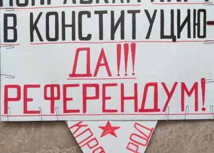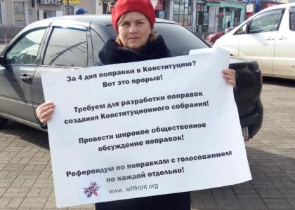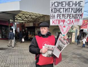 В Краснодаре представители КПРФ и Левого Фронта проводят в людных местах одиночные пикеты. Их лозунги отражают требования левых сил по конституционным поправкам и проведению референдума.