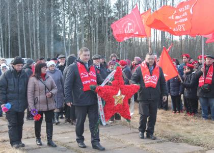 К памятнику Александру Матросову возложили живые цветы. Делегации коммунистов - венок из цветов в форме красной звезды. После митинга с красными знаменами они продолжили автопробег, и отправились в д. Чёрное, где захоронение находится на месте, военного госпиталя, и покоится свыше 700 советских солдат.