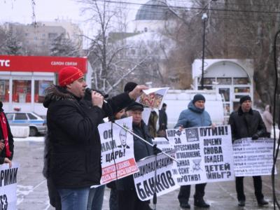 Лозунги, под которыми прошла акция протеста, красноречиво говорили о реальных настроениях народа: «Да здравствует 102–я годовщина Красной Армии!», «России нужна народная Конституция!», «Требуем закон о Детях войны!», «Сохранить Саратовский радиоприборный», «Сохранить СЭПО», «Нет армии без оборонки», «Недра - народу, долю продажи ресурсов – каждому».
