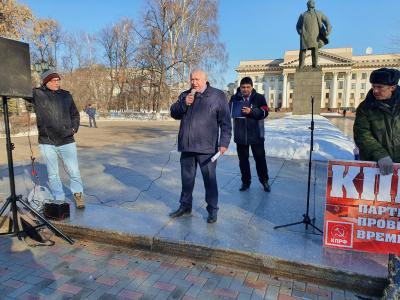 Кроме этого выступающие обращали внимание на вносимые поправки в Конституцию РФ и поддержали программные предложения КПРФ по созданию справедливой Конституции и Правительства народного доверия. В начале и в завершении митинга Виктор Ильиных исполнил праздничные песни.