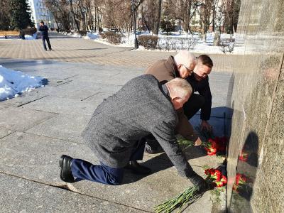 Коммунисты возложили цветы к памятнику В.И. Ленина, основателя Рабоче-крестьянской Красной армии.